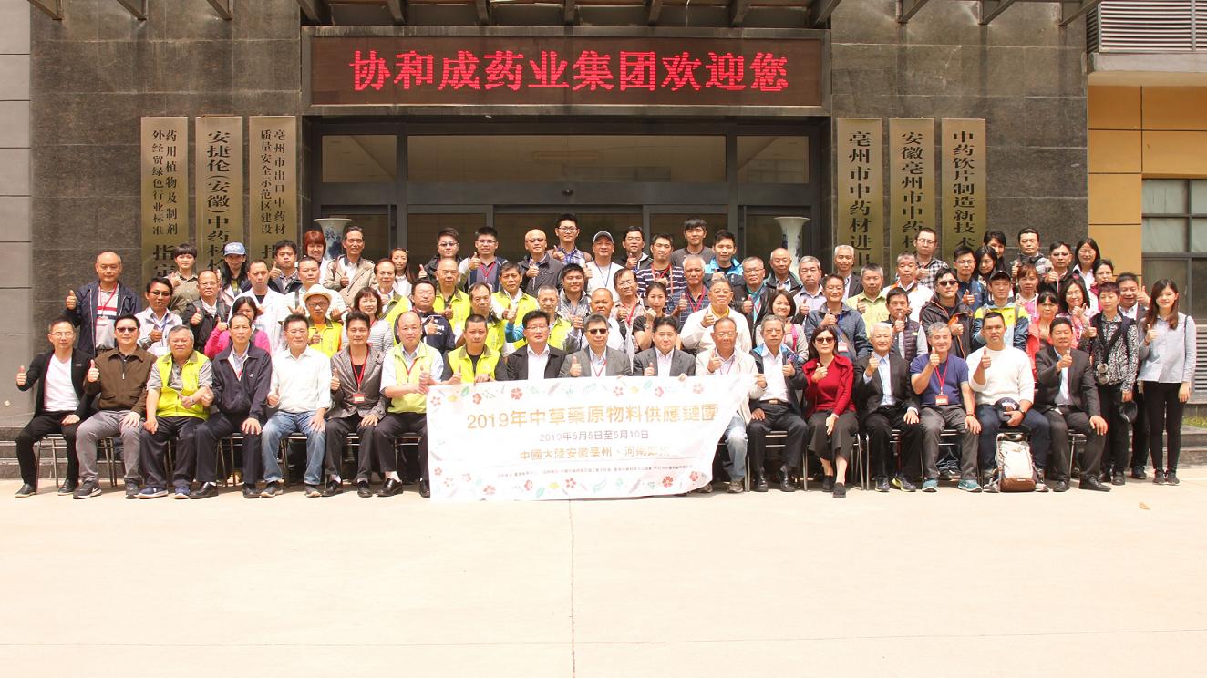 5月5日至5月8日,由台湾中药商业同业公会全联会理事长马逸才率领的2019年台湾中草药原物料供应链团一行97人受我公司邀请来亳州开展两岸中草药交流活动。台湾中草药原物料供应链团是由台湾中药商业同业公会全联会、台湾中药经贸文化协会、新北市中药商业同业公会三个公协会成员所组成。这些团员分别在台湾从事中药材进口、批发及零售等业务,同时随行的还有学校教授与检验公司专家。