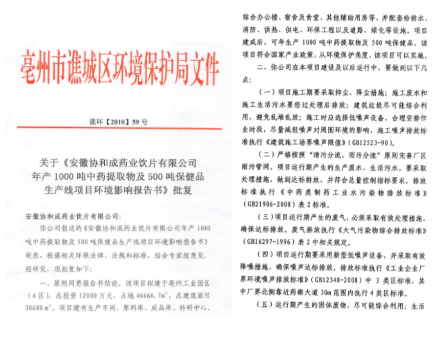 一、基础信息、排污信息 单位名称安徽协和成药业饮片有 限公司注册地址安徽省毫州市谯城区十 八里工业区邮政编码236800生产经营场所地址安徽省毫州市谯城经...