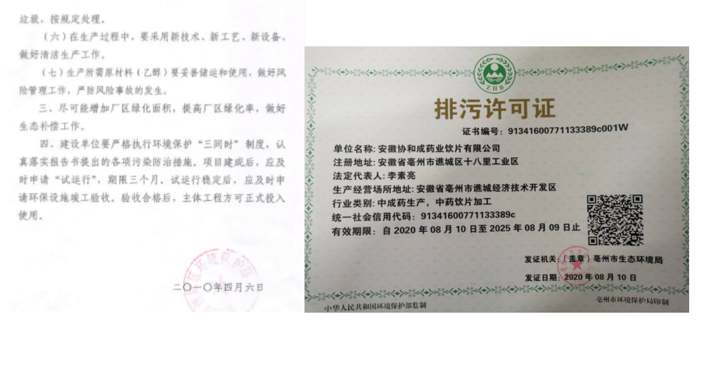 单位名称 | 安徽协和成药业饮片有 限公司 | 注册地址 | 安徽省毫州市谯城区十 八里工业区 |